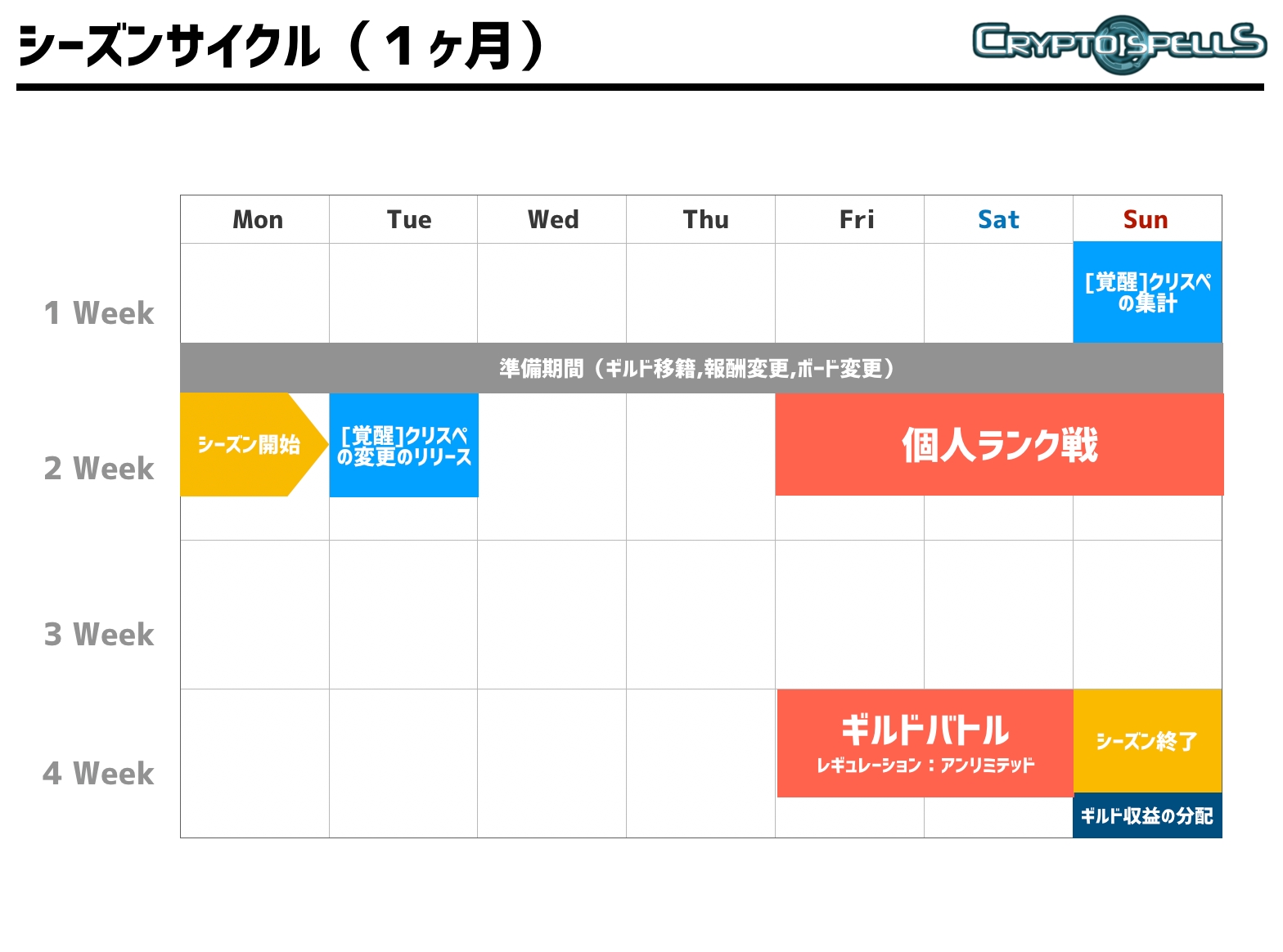 クリプトスペルはシーズン開始時にランダムで選出されて覚醒します。覚醒は次シーズンの準備期間最終日まで持続します。